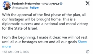 Republikani njoftoi se si Izraeli ashtu edhe Hamasi kishin miratuar fazën e parë të planit dhe kjo do të sillte lirimin e të gjithë pengjeve – të gjallë dhe të vdekur – ‘shumë shpejt’ dhe tërheqjen e ushtarëve izraelitë në të ashtuquajturën vijë të verdhë në Gaza.