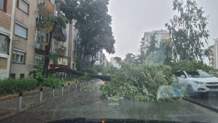 Pas stuhisë së fortë që kapi rajonin e Shkupit, në kryeqytet vërehen vetura të thyera, pemë të rrëzuara dhe rrugë të bllokuara