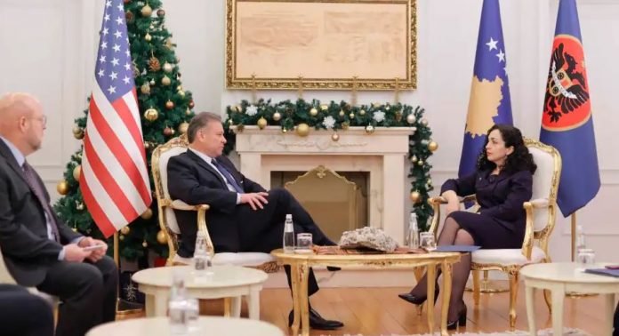 Pas takimit që presidentja e Kosovës, Vjosa Osmani, pati me të dërguarin amerikan për Ballkanin Perëndimor, Gabriel Escobar, u tha se “është diskutuar për zhvillimet e fundit në vend dhe në rajon”, por nuk u dhanë më shumë detaje.