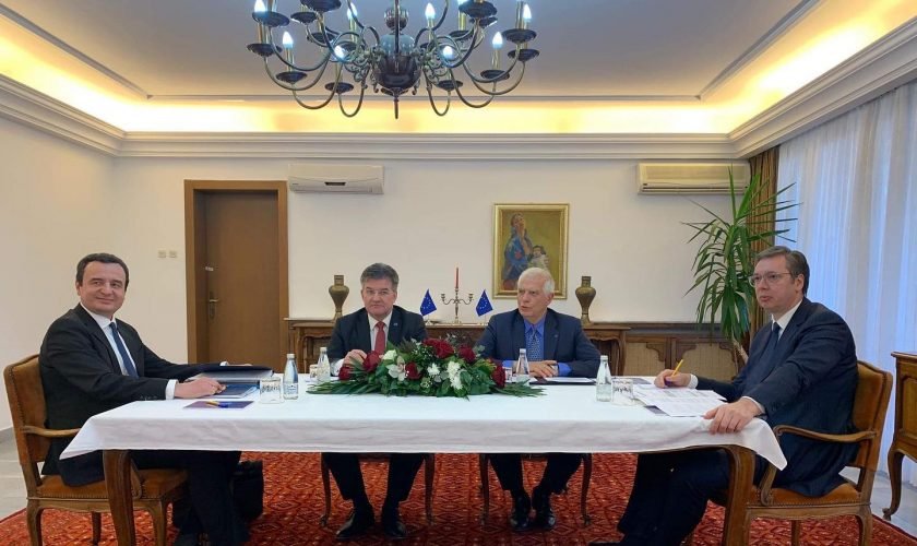 Paraprakisht, ata takuan ndaras shefin e politikës së jashtme të BE-së, Josep Borrell, dhe të dërguarin e BE-së për bisedimet Kosovë-Serbi, Mirosllav Lajçak. Temë diskutimi ishte zbatimi i një propozimi të Bashkimit Evropian për normalizimin e marrëdhënieve.