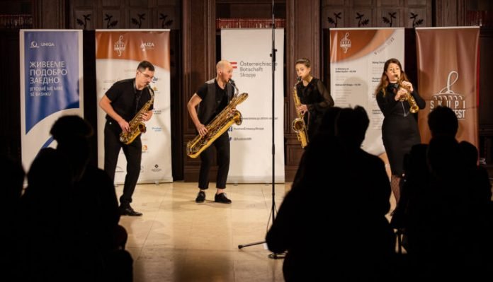 Ky koncert, i fundit për këtë edicion, si një përmbyllje solemne e tërë aktiviteteve e mbrëmjeve muzikore që pasuan në dy muajt e shkuar, të dielën solli para publikut shkupjan një koncert jo të përditshëm, një kuartet saksofonësh, nga Austria, të njohur si “Aureum Saxophon Quartett”, në përbërje të Martina Stückler (sopran saksofon), Johannes Weichinger (alt saksofon), Viola Jank (tenor saksofon) dhe Lukas Seifried (bariton saksofon). Ky kuartet ka performouar në festivale ndërkombëtare të mbajtura që nga Gmunden e deri në Stamboll. I përbërë nga një grup të rinjësh, ata kombinojnë dhe sjellin para publikut muzikën klasike, jazz, dhe muzikën popullore duke lidhur tradicionalen me modernitetin.