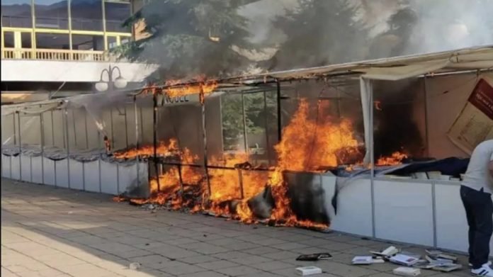 “Nuk e di çfarë ka ndodhur, vetëm më kanë thirrur se ka rënë zjarr. Dëmi është mbi 10 mijë euro. Disa tenda u dogjën, arritëm të shpëtonim disa kuti me libra. Tendat janë marrë me qira, do të duhet t’i paguajmë, dëmi do të jetë mbi 20 mijë euro – tha Muhamedi nga libraria Nobel.